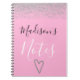 Caderno Espiral Girly Pink & Silver Glitter Espalha Notas do Coraç