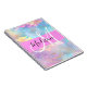 Nome do monograma holográfico iridescente, holográfico e notebook inicial. Seu nome personalizado e monograma são escritos em um elegante roteiro escrito à mão com um fundo rosa. Um aniversário perfeito ou presente de Natal!