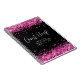 Crie seu próprio doce caderno de vazios decorado com cobrir de celebrações de 16 anos de aniversário para seu dia especial. Brilhante rosa quente com um fundo preto sólido personalizável. Os faíscas e brilho falsos são gráficos digitais que impressão gostam de uma foto. Personalize o estilo, o tamanho ou a cor da letra da caligrafia do "Livro Convidado" para corresponder. Décimo sexto aniversário de 16 anos.