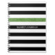 Personalize este moderno notebook horizontal preto e branco com padrão de listras, com uma faixa verde brilhante, como brilho, adicionando o nome de qualquer menina feminina. Este padrão gráfico de tendência é perfeito para a moda quic. Imagem impressa plana, NÃO com brilho real.