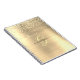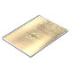 A trendy design of faux brushed gold metal background and gold glitter with gold monogram and black script name.