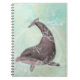 Caderno Espiral Golfinho Espalhando em torno de Aqua Green Water