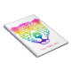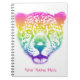 Adicione um estilo selvagem com este super fotógrafo fotógrafo bonito com um rosto de guepardo-arco-íris esfregado em um fundo branco. Perfeito para meninas e adolescentes, este notebook personalizável é um acessório divertido e vibrante!