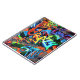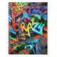 Caderno Espiral Grafite brilhante, design gráfico urbano.
