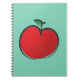 Caderno Espiral Grande Maçã Vermelha Desenhando em um Fundo Verde