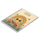 Este notebook personalizado inspirado na década de 70 apresenta um sol quente e sorridente com óculos de sol sobredimensionados, arco-íris groovy, margaridas e uma carrinha VW retrô com "Baby on Conselho".