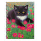 Notebook com um gato gustav Klimt tuxedo! Este adorável gatinho preto e branco se senta num campo de flores vermelhas, azuis, brancas e laranja. Um presente incrível para amantes de gatos e entusiastas de arte austríacos!