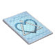 O lindo, versátil, personalizado notebook apresenta uma pintura digital original de Leslie Sigal Javorek de uma estrela altamente estilizada de David criada de um coração e triângulo encravados feitos de diamantes e safiras. O título "Halevei" (Yiddish para "What If.."), o subtítulo "My Dreams & Wish" (Meus sonhos e desejos) e o nome no fundo são campos desimpedidos personalizáveis.