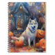 Caderno Espiral Halloween Alaskan Malamute Com Pumpkins Assustado