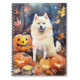 Caderno Espiral Halloween American Akita Com Pumpkins Assustado