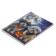 Libere o espírito assustador com esta design sombria do Dia das Bruxas apresentando um bando de cachorros sob um céu escuro e iluminado, cercado por morcegos voadores e abóboras brilhantes. Perfeito para aqueles que amam um toque de diversão terrível com seus amigos peludos!