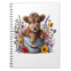 Caderno Espiral Highland Cow in Flower Bucket Png, Cute