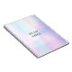 Caderno holográfico moderno minimalista, gradiente de arco-íris, iridescente, com fundo pérola personalizado com seu nome. Projetado por Thisisnotme©