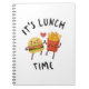 A que horas é o almoço? É hora do almoço. Engraçado hambúrguer e batatas fritas apaixonadas. Uma combinação perfeita para crianças e adultos.