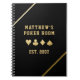Símbolos modernos de ouro amarelo e traje preto em uma linha de hetero em um notebook personalizado, perfeito para o host de uma sala de jogos, torneio de pôquer, clube de bridge ou jogos de boato - adicione seu nome ou texto personalizado e selecione uma cor de fundo para um presente de excelente aniversário para um jogador de cartas. — Altere as cores ou fontes no design clicando no link PERSONALIZAR MAIS.
