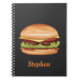 Caderno Espiral Ilustração de Comida Rápida Hamburger com Nome Per