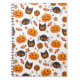 Um padrão super fofo de halloween. Nesta ilustração você pode ver abóboras, aranhas, corujas, estrelas e doces. O esquema de cores deste design de halloween é laranja, preto e branco.