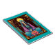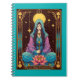 Notebook no cartão tarot "A Alta Sacerdosa", com uma figura serena e meditativa com lua crescente na testa, segurando um cetro de ouro. Cercado por símbolos celestes, um halo brilhante, e um lótus florescente, incorpora intuição, sabedoria e despertar espiritual em detalhes intrincados e místicos.