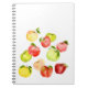 Caderno Espiral Ilustração verde de maçã vermelha aquarela outono