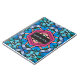Um design de vidro colorido geométrico com 1920 e estilo Art Deco 1930, em tons de azul. As formas centrais são cor-de-rosa e incluem seu próprio nome ou título.
