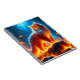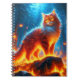 Esta imagem cativante apresenta um gato parado entre as chamas, banhado no brilho quente do fogo. Os elementos místicos e de fantasia da cena evocam um sentimento de encantamento, à medida que o pelo do felino brilha no céu. É um visual poderoso que combina a feroz e mágica, criando uma imagem inesquecível de maravilha e intrigas.