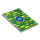 Bela, cartoon, colorido caderno de desfile de carro para o garoto da escola com iniciais gigantes.