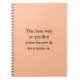 Perfeito para a escola ou para trabalhar este notebook cor de pêssego é motivacional. O cobrir apresenta uma citação inspiradora, "A melhor maneira de prever seu futuro é criar," em uma simples fonte negra contemporânea. Este notebook é perfeito para anotar seus pensamentos, sonhos e planos, servindo como um lembrete diário para tomar o controle de seu destino e moldar seu próprio futuro. Sua design estética faz dela não só funcional, mas também acessória na moda para carregar com você. Este notebook também faz um presente perfeito, especialmente para voltar à escola ou para um novo emprego!
