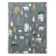 Caderno Espiral Inverno da cinza azul-cozy na aldeia nórdica