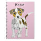 Este lindo notebook personalizado apresenta meu desenho de um lindo cãozinho Jack Russell terrier contra um fundo rosa. O Jack Russell é branco com manchas castanhas e um rosto castanho e branco com grandes olhos atraentes.