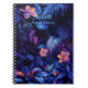 Pintura digital de um jardim tropical à noite com plantas brilhantes.