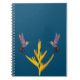 Flor amarela e beija-flores roxos, cor de fundo personalizada do caderno.