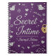 Typographie : Le titre principal "Secret Intime" est écrit en grandes lettres cursives argentées et pailletées. En dessous, on retrouve l'inscription "Journal Intime" dans une police plus petite et élégante.