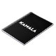 Notebook moderno de tipografia ousada minimalista negro espiral de Kamala. Texto branco sobre fundo preto de cor sólido editável.