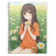 Caderno Espiral Kawaii Anime Girl in Daisy Garden
