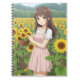 Caderno Espiral Kawaii Anime Girl in Sunflower Garden