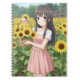 Caderno Espiral Kawaii Anime Girl in Sunflower Garden
