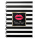 Caderno Espiral Lábios Vermelhos Modernos - Listras Negras e Branc