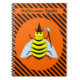 Este notebook incrível apresenta uma linda bruxa amarela de abelhas com listras pretas. A Abelha tem grandes listras pretas brilhantes e pequenas antenas pretas bonitinhas. As asas da abelha são dobradas para parecer uma capa. A abelha está vestindo um chapéu preto alto com estrelas laranja e roxa sobre ela. Ela também segura uma varinha mágica em forma de estrela e brilha com muitas cores diferentes. O fundo é um padrão de listras laranja e pretas.