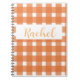 Belo notebook personalizado de Gingham Laranja e Branco, é um design clássico que contém um olhar marcado ou xadrez de búfalos, um lindo design colorido. Compre uma hoje!