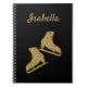 Dourado caderno personalizado de patinagem para patinador artístico (menina ou garoto) - design de skate de gelo - belo presente de patinagem no gelo para tomar notas ou criar um diário. Cores: Dourado efeito de brilho no fundo preto. Design: Par de skates numéricos + personalizar com o nome do patinador de gelo. Projetado por iceskatingpassion.com. Outras cores do compro https://iceskatingpassion.com/stores/