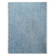 Caderno Espiral Lave com ácido jeans azuis, textura denim.