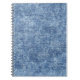 Caderno Espiral Lave com ácido o denim azul, textura próxima.