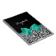 Personalize adicionando o nome de qualquer menina feminina a este rotineiro notebook preto e branco com uma fita verde esmeralda esmeralda ligada a um arco giro. Este design de impressão na moda é uma imagem impressa sem fita real.