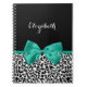 Caderno Espiral Leopard Imprima Emerald Green Ribbon Arco Nome