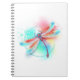 Caderno Espiral libélula vermelha sobre fundo de aquarela