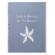 Caderno Espiral Life is Better Beach Blue White Starfish