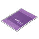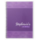 Lilac Damask notebook com elegantes bordas moldadas em damasco contra um fundo roxo.