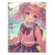 Caderno Espiral Linda Garota de Anime de Tranças Rosa