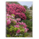 Um notebook de tamanho pessoal, encadernado em espiral, que apresenta a foto do cobrir de um jardim de lindas flores rosas de Rhododendron. Um design floral adorável! Use como diário ou para fazer anotações. Personalize adicionando nome, etc.