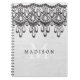 Estes cinza e caderno românticos, femininos do preto caracterizam o olhar do laço preto elegante que pendura para baixo sobre um fundo de linho rústico, cinzento do olhar de serapilheira. Sua inicial do monograma está no branco, e seu nome está no preto.